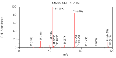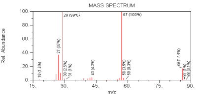 In this spectrum, the molecular ion is 98 and there is one oxygen atom. Calculate the number of rings + double bonds in this compound. (Check the hint!)