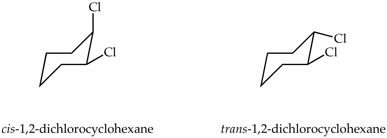 Structural drawings (molecular models, too) can be deceiving. For example, the chlorine atoms in 1,2-dichlorocyclohexane seem much closer to each other in a drawing of the trans- stereoisomer than in the cis-. Make models of each in WebMO and use the AM1 theory level to optimize the geometries. Measure the distance between the chlorines in both models. Report what you find.